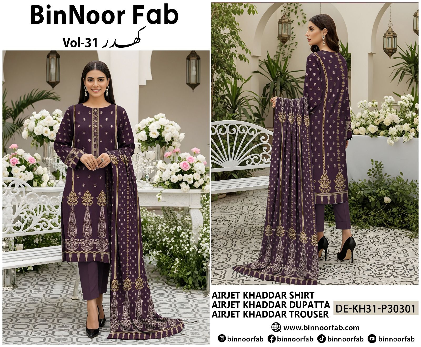 Original Brand Bin Noor Vol 31. 3PC Khaddar (10 Suits)